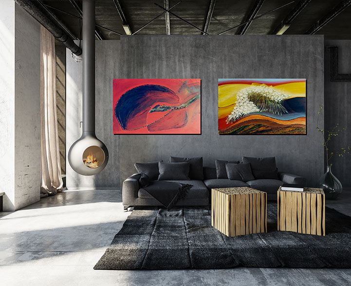 Lava, Erdpigmente, Acryl - Bilder, 130x80cm, 1996 Lava, earth-pigments, acryl on canvas,1996