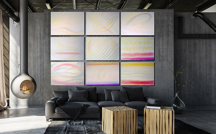 9 paintings, 100x60cm, aryl on canvas, chalk base,1994